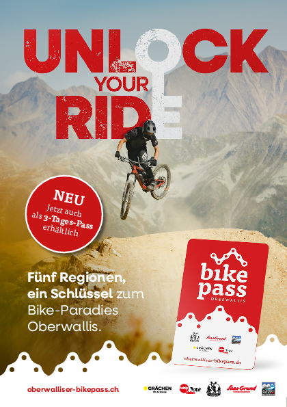 Das Highlight für alle, welche Bike-Abfahrten lieben. Von Hohsaas auf 3'200 m ü. M. führt dieser Trail bis nach Saas-Grund auf 1'500 m ü. M. Alpine Bergkulisse und Bikespass pur.