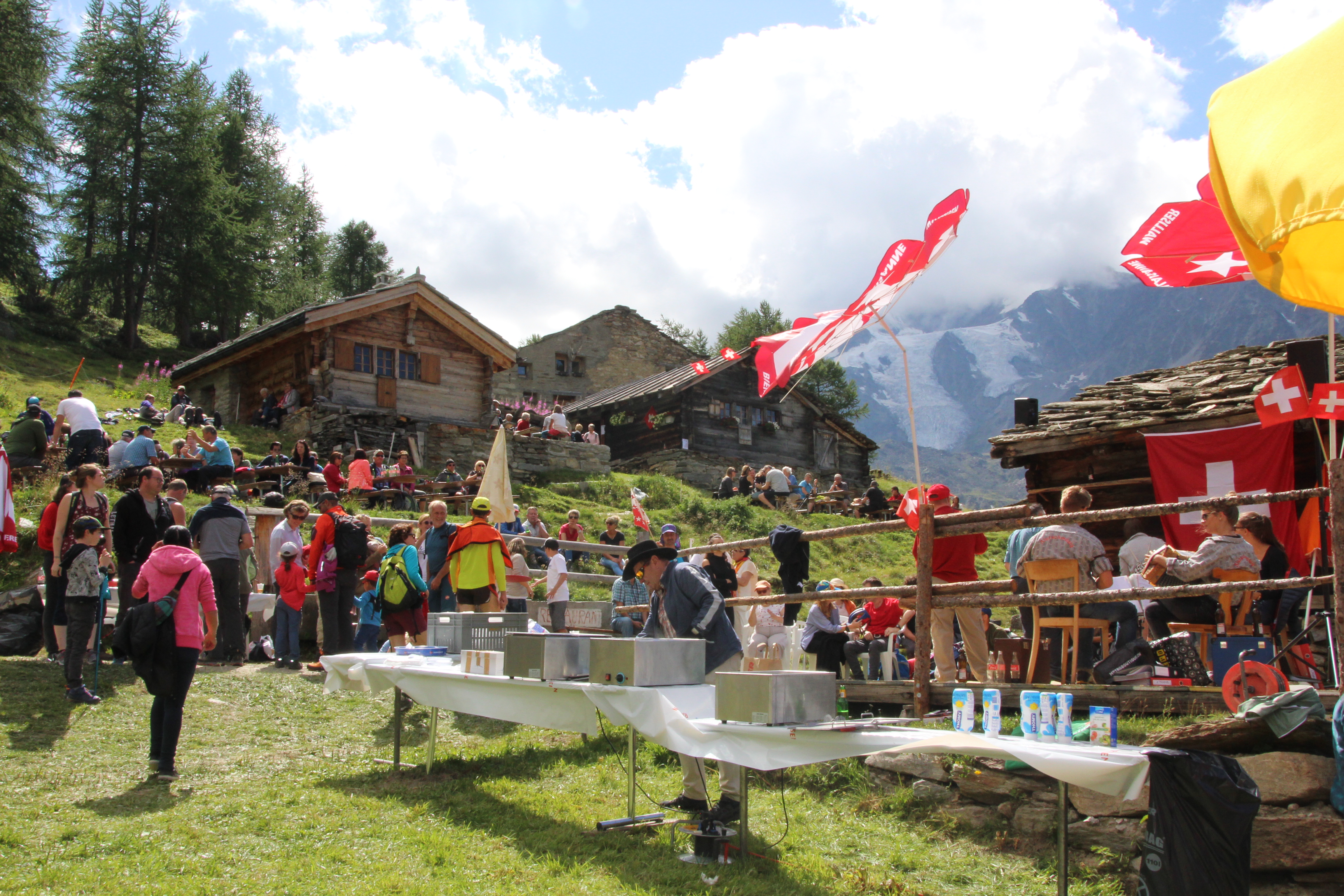 Auf der Triftalp verbringen die Kühe den Sommer. Natürlich freuen sie sich über unseren Besuch. Ebenso wie der zuständige Senn, dem wir beim Käsemachen zuschauen dürfen. Er wird uns einiges über seinen harten Alltag auf der Alp erzählen. Wir treffen uns bei der Talstation in Saas-Grund und fahren gemeinsam bis zur Zwischenstation Trift, wovon wir dann in 10 Gehminuten die Triftalp erreichen. Hier treffen wir den Senn oder die Käserin und legen eine kleine Rast ein. Dazu servieren wir ein reichhaltiges Apéro mit Produkten aus der Region. Zurück geht es individuell mit der Bahn oder zu Fuss nach Saas-Grund.