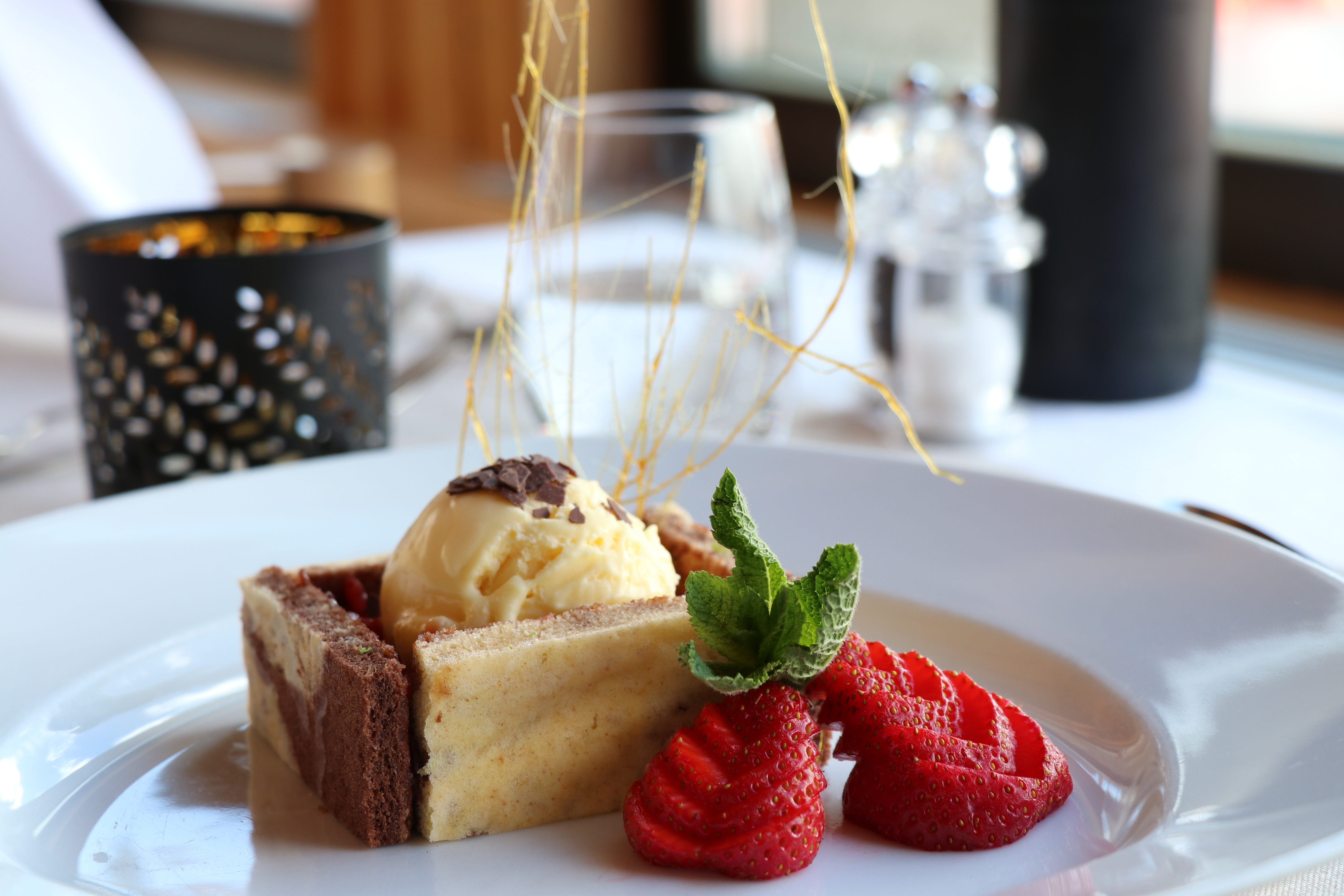 Hier lässt du deinen Tag auf der grossen Sonnenterrasse bei einem Aperitif und der atemberaubenden Aussicht ausklingen.