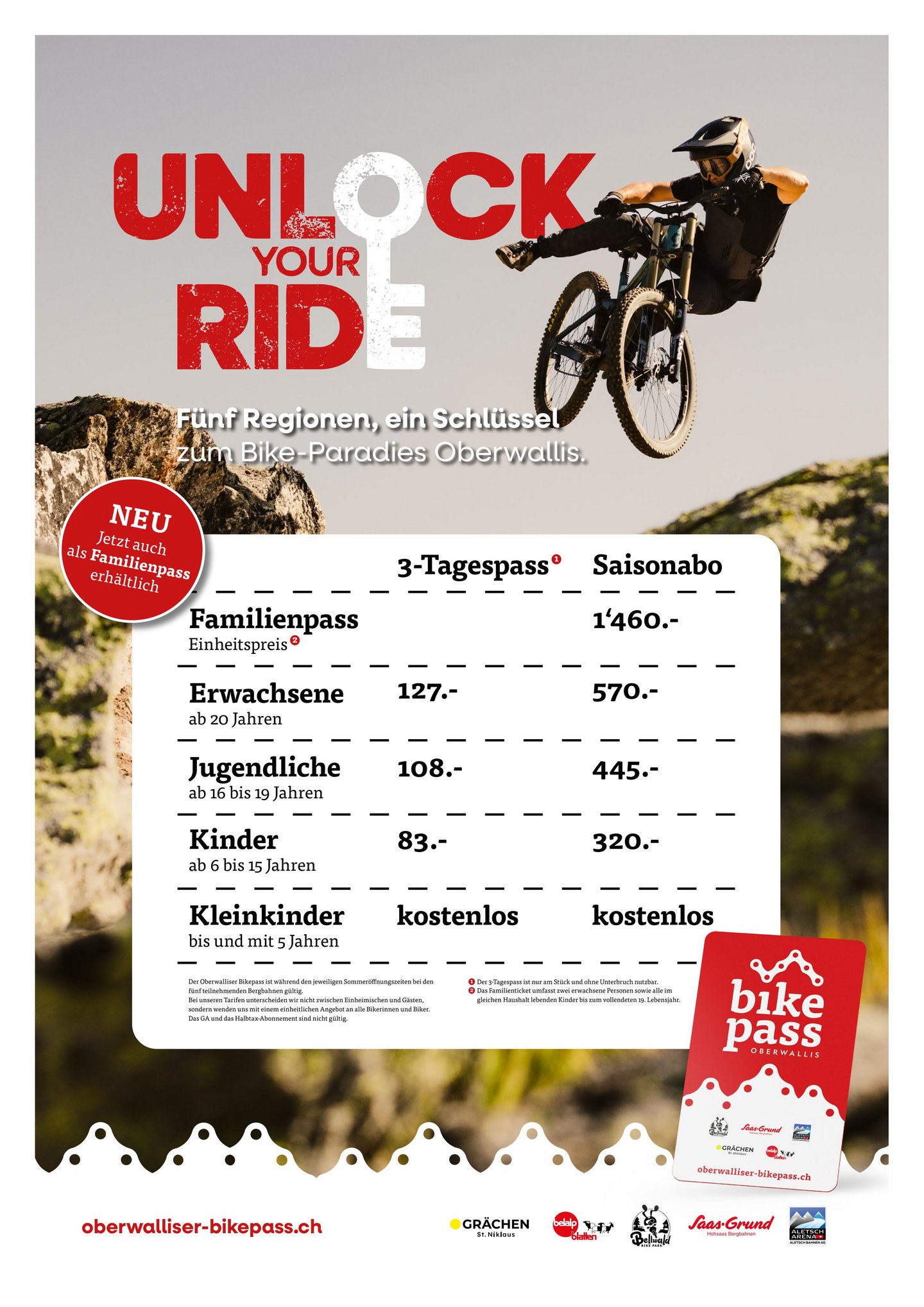 Wir bieten im Oberwallis erstmals ein einzigartiges überregionales Produkt für alle Bikerinnen und Biker an. Mit dem Bikepass hast du unbeschränkten Zugang zu den teilnehmenden Bergbahnen – natürlich mit deinem Bike. So hast du die Möglichkeit, die Oberwalliser Bikeparks einen ganzen Sommer lang mit einem einzigen Pass zu entdecken.