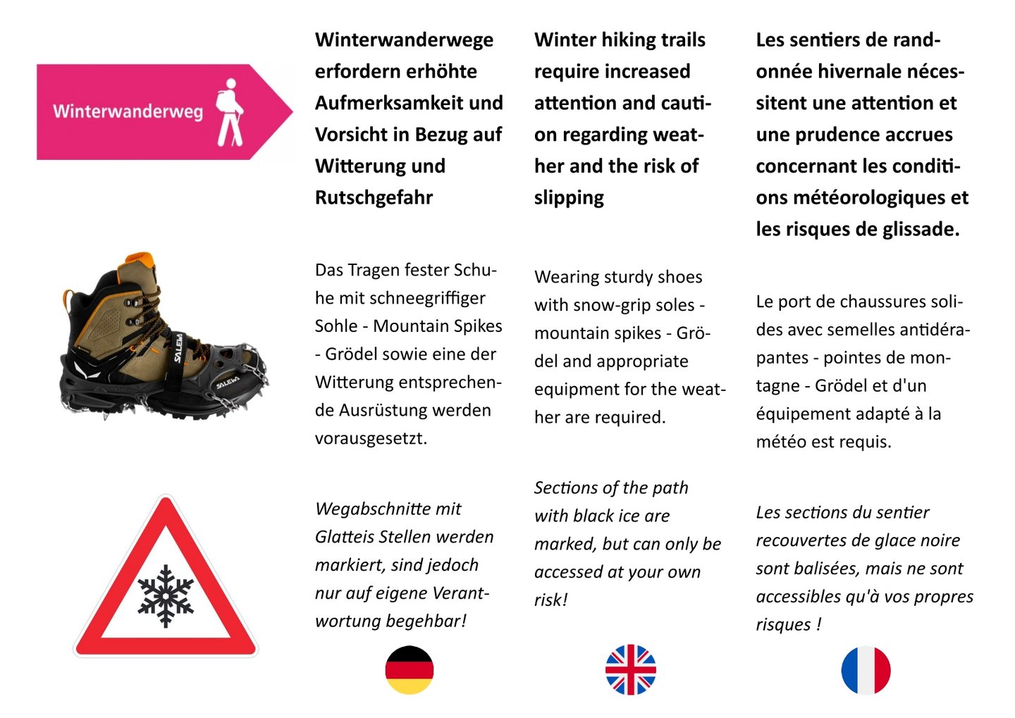 - Die Benutzung der Winterwanderwege erfolgt auf eigene Gefahr.