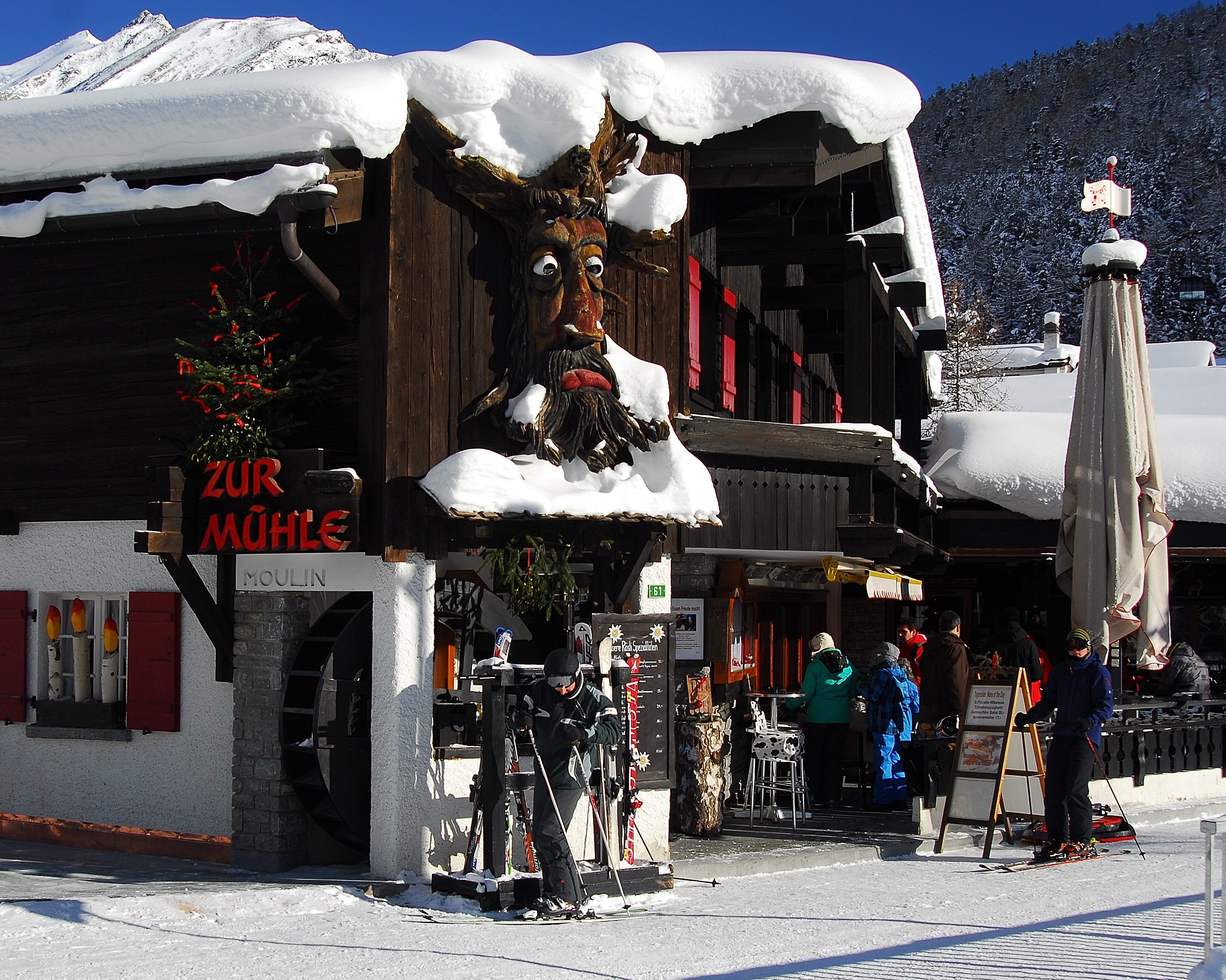 "Z'Gröttli" is always worth a stop! Here you will find fine Valais specialities, seasonal delights, homemade desserts such as apple strudel, fruit cake, famous cream cut and other delicious dishes. Of course, don't forget the various house coffees with cream topping! There is a monster coffee for the very thirsty: house coffee in a litre coffee glass!