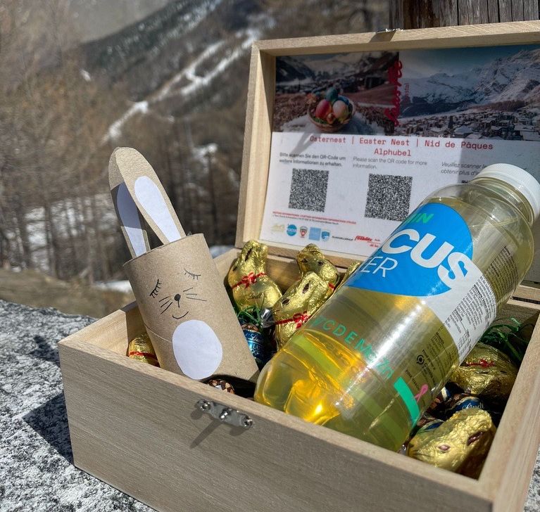 The Easter Bunny has already been busy for a few days and is on the move everywhere in the Saas Valley.