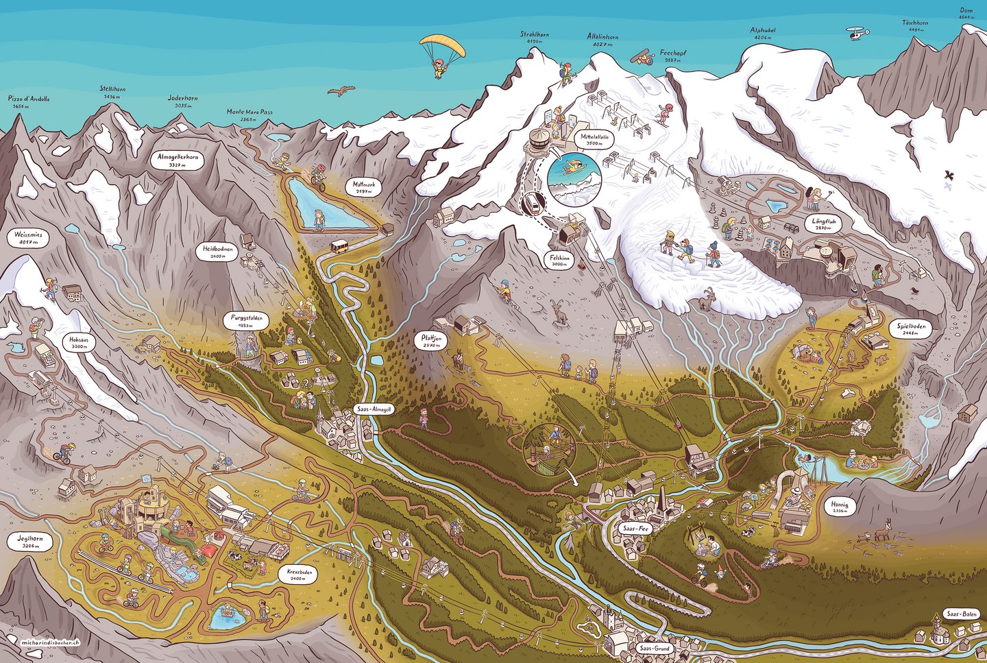 - From Saas-Fee, take the world’s highest underground funicular, the Metro Alpin, up to Mittelallalin at 3,500 m a.s.l. and visit the world’s highest revolving restaurant. Discover the new VirtuAllalin (VR experience) and immerse yourself in the fascinating world of glaciers and ancient stories.