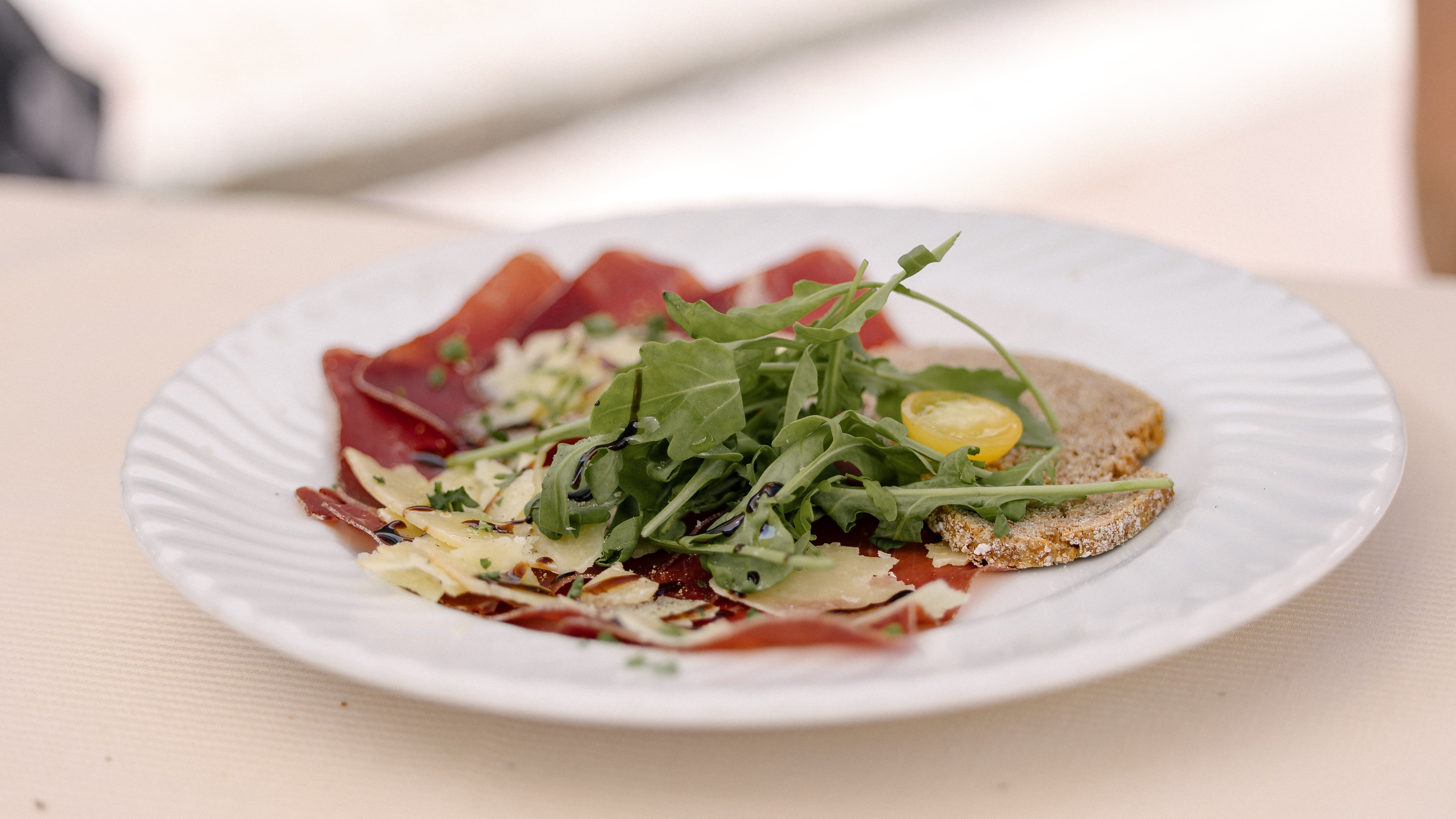 - Carpaccio de viande séchée avec fromage à rebibes et roquette