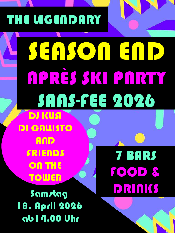 L'événement de fin de saison qui fait bouillir les sentiments printaniers à coup sûr C'est partir à 14h00! La fête se déroulera du Skihütte Burgener à l'hôtel Mistral, en passant par la Black Bull Arena, le restaurant Zur Mühle et l'hôtel Bristol.