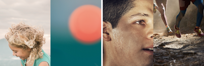 Nous illustrons l'activité par des gros plans sur des pièces d'équipement ou des parties du corps en mouvement (exemple: gros plan sur le patin à glace, sur la main tenant le piolet, etc.) Ils sont complétés par des gros plans sur les visages des protagonistes, qui font office de plans de réaction (par ex. communiquer l'effort, le plaisir ou la joie).