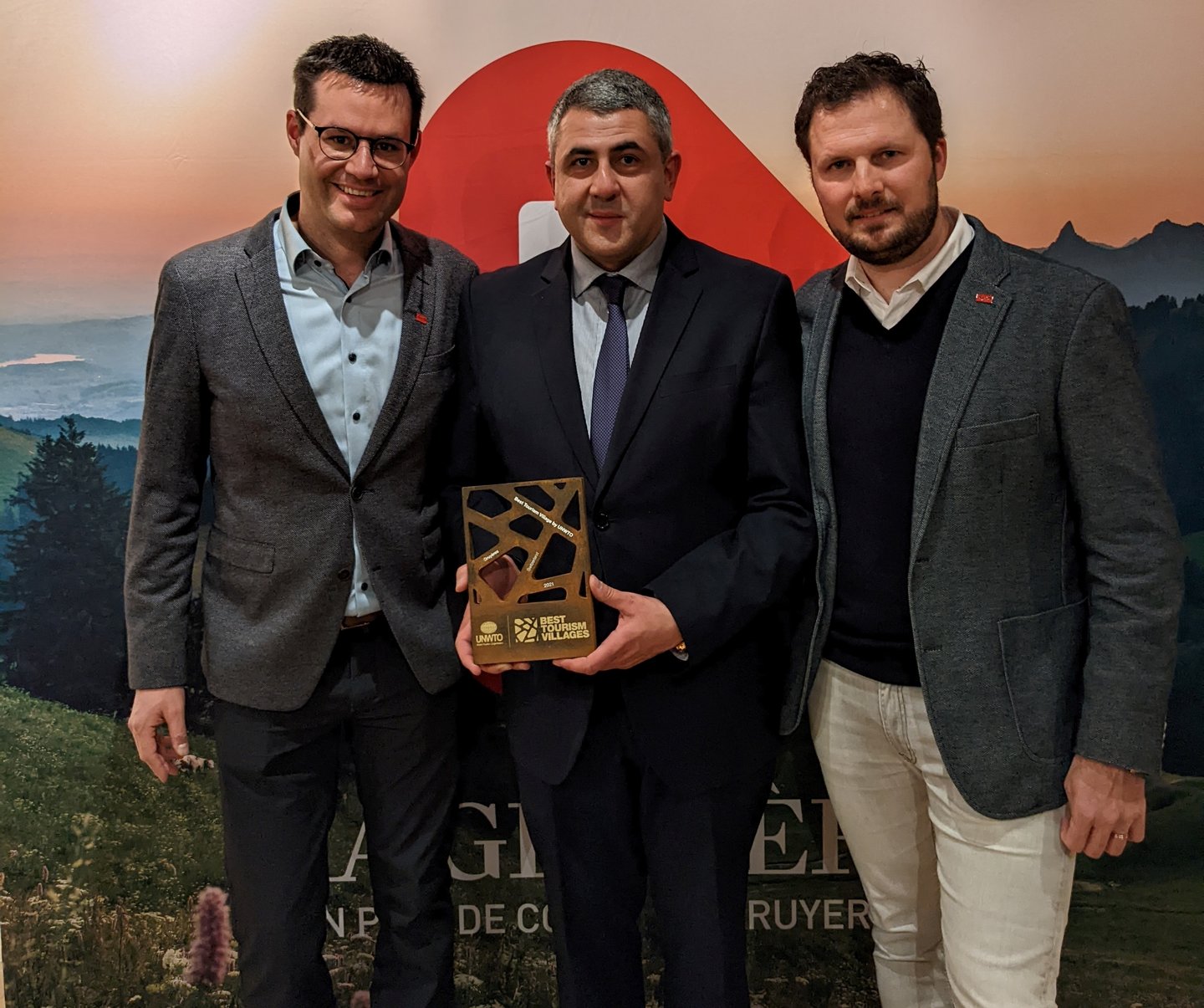 Anlässlich des Besuchs einer Delegation der Welttourismusorganisation in der Schweiz überreichte der Generalsekretär Zurab Pololikashvili den drei Preisträgern das Label im Rahmen einer Veranstaltung in Gruyères in Anwesenheit von Eric Jakob, Botschafter und Leiter der Direktion für Standortförderung des SECO und Martin Nydegger, Direktor von Schweiz Tourismus.